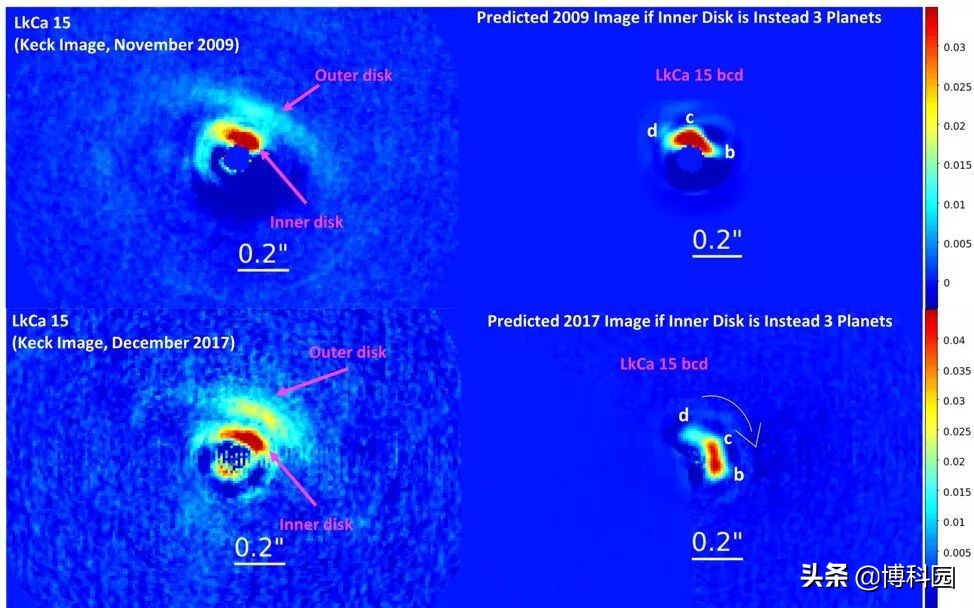 它们在某个地方,可能嵌入到磁盘中,研究结果是利用从Maunakea上互补仪器获得的LkCa 15系统的高分辨率图像得出。在斯巴鲁,研究人员使用了一种新的尖端行星成像仪器——斯巴鲁日冕极端自适应光学(SCExAO)系统,该系统与CHARIS积分场摄谱仪耦合,以获得近红外波长的极其清晰图像。研究小组还利用凯克天文台强大的自适应光学系统和近红外摄像机(NIRC2),在年轻行星发出更多光的较长、热红外波长处获得了新的清晰图像。该团队还通过访问凯克天文台档案(KOA)获得了该系统的“前后”视图,以查找2009年以来LkCa 15的NIRC2数据,比新的SCExAO/CHARIS和NIRC2图像早了8年。