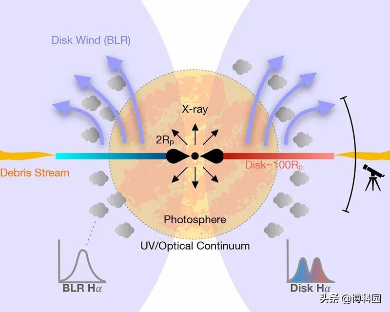 这是第一次确凿地证实,即使没有看到X射线,也会在这些事件中形成吸积盘。靠近黑洞的区域被一股光学厚风遮挡住了,所以我们看不到x射线发射,但确实看到了一个延伸的椭圆盘发出的光学光。吸积盘的证据来自光谱观测,合著者、加州大学洛杉矶分校天文学和天体物理学助理教授瑞安·福利(Ryan Foley)和团队在由全天超新星自动化勘测(ASAS-SN)首次探测到TDE(名为AT 2018hyz)后,开始监测TDE。