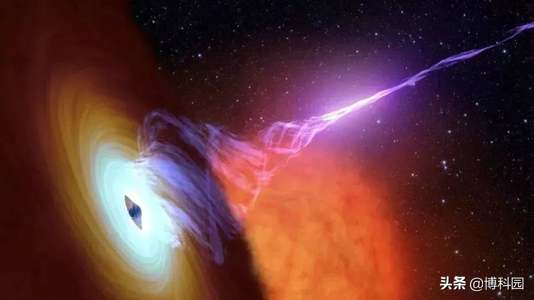 几乎所有星系中心都有一个黑洞,黑洞具有难以想象的巨大质量,因此可以吸引物质、气体甚至光。但它们也可以以等离子射流的形式发射物质:一种从星系中心喷出具有巨大能量的等离子束,等离子射流可以延伸到数十万光年的遥远太空。当这种强烈的辐射被发射出来时,黑洞仍然是隐藏的,因为它附近的光线被强烈地弯曲,即事件视界,导致了黑洞“阴影”的出现。