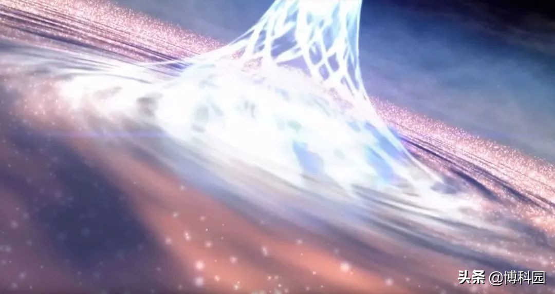 类星体3C279中黑洞附近的时空被迫旋转,锚定在黑洞周围等离子体上的磁场会排出喷流,减缓黑洞的旋转,并将其部分旋转能量转化为辐射。