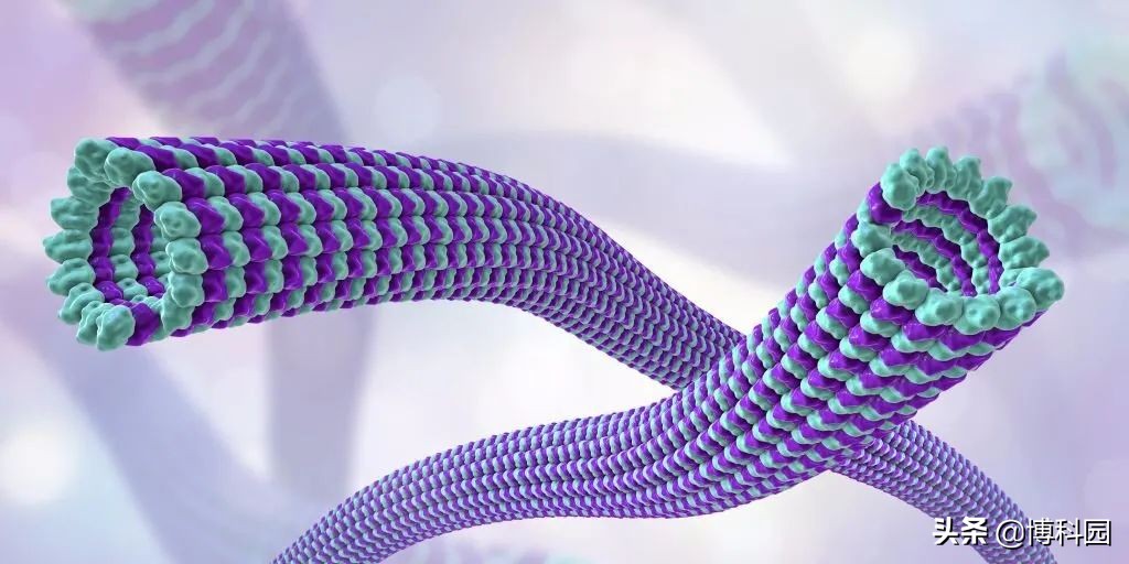 图示:一种由蛋白质微管蛋白组成的聚合物,它是参与细胞内运输、细胞移动和细胞核分裂的细胞骨架组成部分。