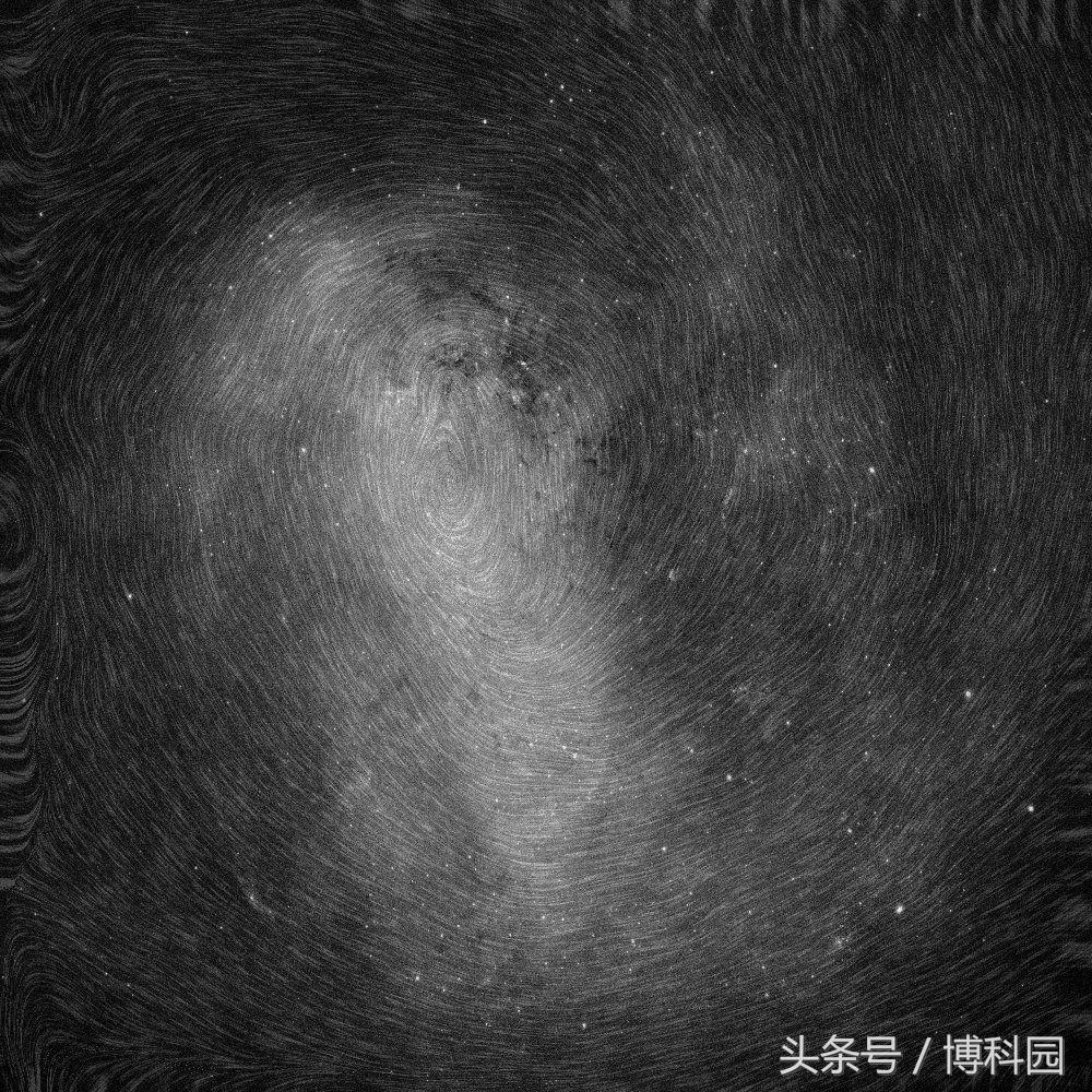 博科园–科学科普:(上图:ESA/Gaia/DPAC)这幅图像结合了盖亚(Gaia)在每个像素中探测到的恒星的总密度,并给出了恒星的正确运动的信息——它们在天空中的速度——这代表了图像的纹理,给了它一种类似指纹的外观。通过测量LMC中几百万颗恒星的正常运动,天文学家们能够看到这些恒星围绕星系中心顺时针旋转的痕迹。运动的印象是由线条纹理的漩涡性质所引起的。天文学家们有兴趣推导出球状星团的轨道——古老的恒星系统被引力束缚在一起,并在银河系的光环中找到——以及围绕银河系旋转的矮星系。这将为研究银河系及其周围环境的过去演化提供至关重要的信息。