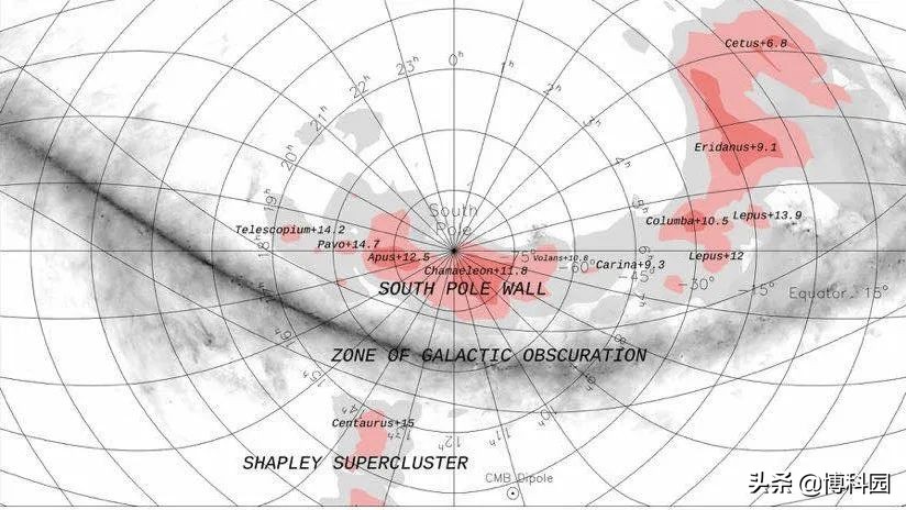 巴黎大学萨克利分校的宇宙制图专家丹尼尔·波马雷德(Daniel Pomarede)是这项研究的主要作者之一,他解释说:人们可能会奇怪,为什么这么大一个不太远的结构一直没有被注意到,这是因为南极墙位于一个还没有完全测量的天空区域,那里的直接观测受到了前景星云和星系尘埃的阻碍,我们之所以发现它,要归功于南极墙的引力影响,“印”在了一个星系样本的速度上。