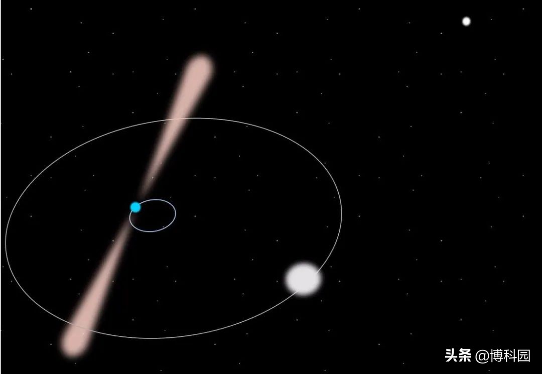 有第二个伴星(扮演太阳的角色)存在,另外两颗恒星‘坠落’(轨道),这使得研究人员能够在比萨塔楼上进行伽利略著名实验的恒星版本。两个不同成分的天体,在第三个天体引力场中以相同的加速度坠落。这些测量是由来自曼彻斯特大学、巴黎天文台-PSL、法国CNRS和LPC2E(法国奥尔良)以及马克斯·普朗克射电天文学研究所的一个合作小组记录。这颗脉冲星围绕着两颗白矮星运行,其中一颗仅用1.6天就绕脉冲星一周,距离脉冲星的距离约为水星与太阳距离的10倍。