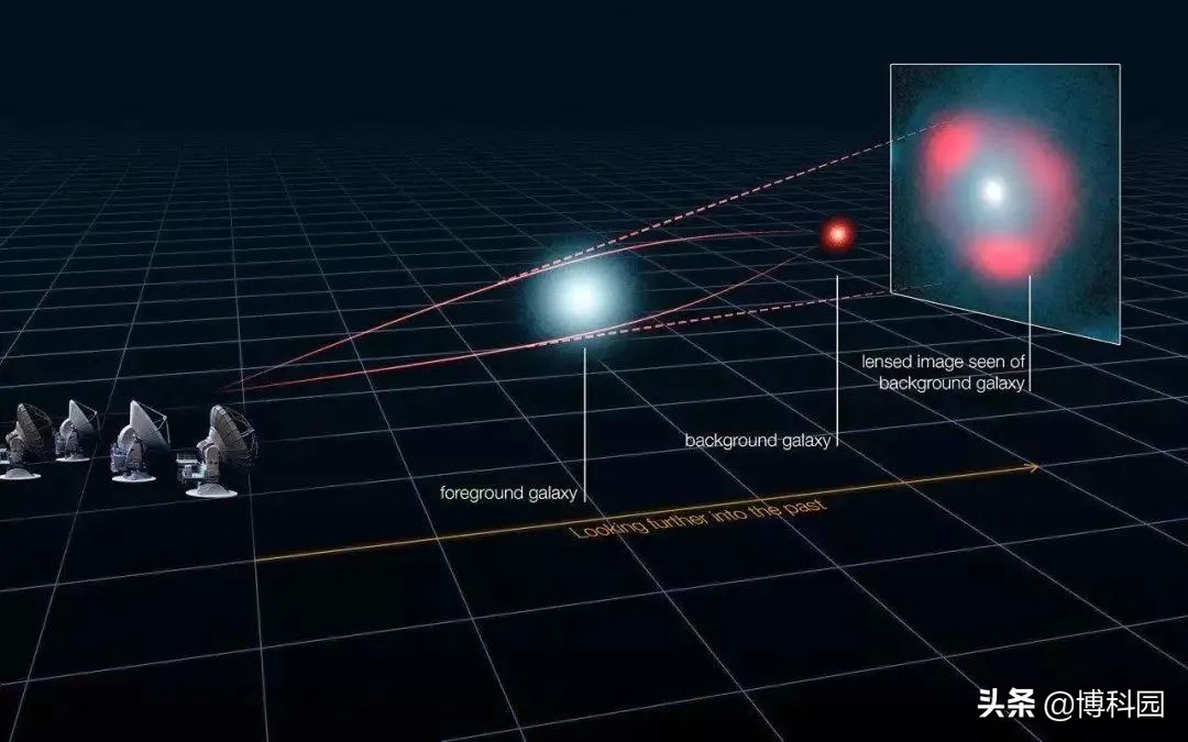 宇宙中的星系和其他大质量物体可以作为引力透镜,引力透镜最早是由阿尔伯特·爱因斯坦在100多年前提出,用来描述光在经过星系和星系团等大质量物体时是如何弯曲的。这些透镜效应通常强弱之分,并且透镜的强度与物体位置、质量以及与被透镜的光源距离有关。产生强透镜的质量可能是太阳的1000亿倍,这会导致来自同一路径上更远物体的光线放大并分裂成多个图像,或者看起来像是戏剧性的弧形或光环。