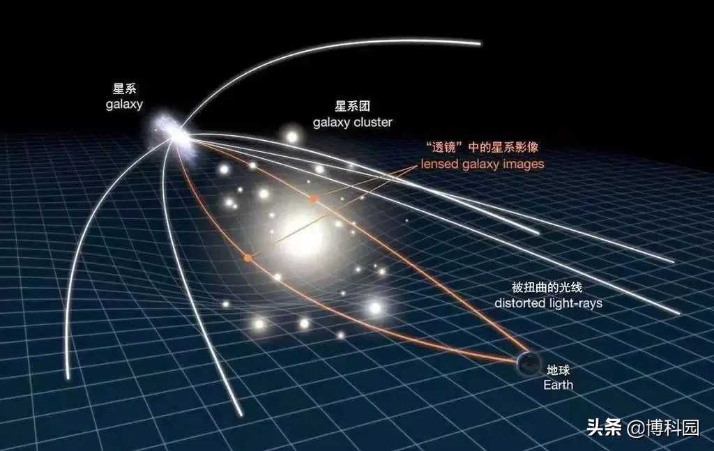 图示:宇宙中的高质量物体并不是完美透镜,当它们使光线偏转时,就会产生扭曲,由此产生的图像看起来就像是透过酒杯底部看到的一样。