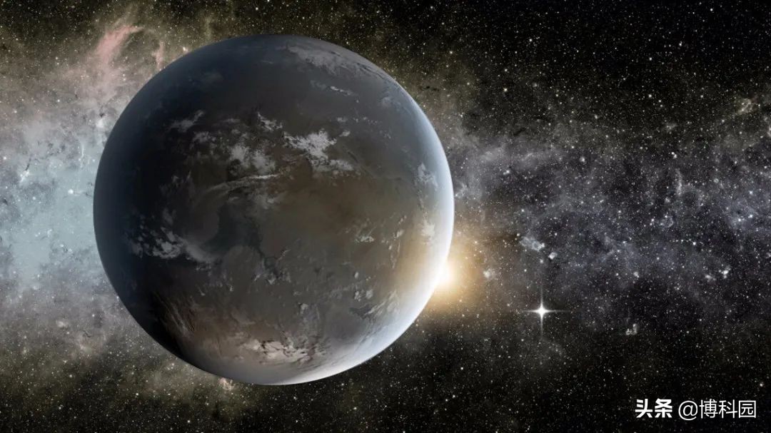 图示:这种艺术图展示的是系外行星开普勒-62f,这是一颗岩石超级地球大小行星,位于天琴座,距离地球约1200光年,开普勒-62f可能是一个生命起源前地球的样子,其他的系外行星可能看起来类似。