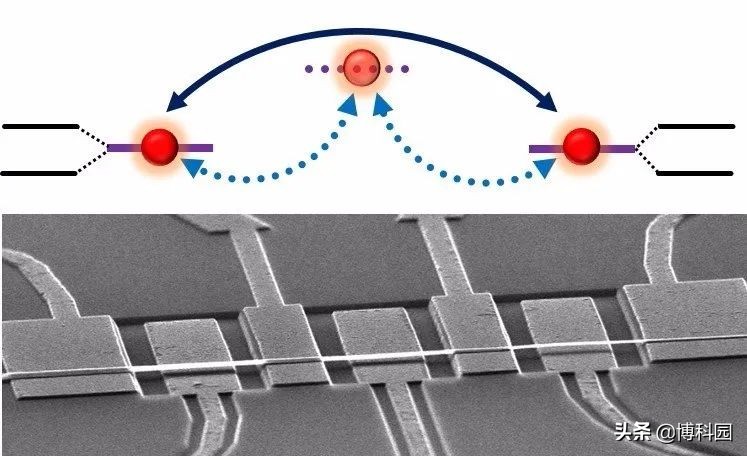 被发现适合于少数声子甚至单个声子的产生、存储和操纵,可以进一步应用于经典和量子信息处理中。各种应用的实现需要不同声子模式之间的相干操作。以前已经报道过相邻声子模式之间的相干操作,而空间分离声子模式之间可控的相干信息传输在技术上仍然具有挑战性。围绕这一目标,研究人员在之前成果的基础上设计了一种新装置。利用石墨烯特殊的电子和力学性质,实现了中心声子模介导的非相邻声子模之间的可调谐强耦合。