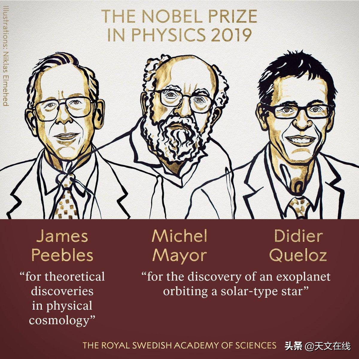 天文学家并不是每一年都能获得诺贝尔物理学奖——上一次是在2017年,再上一次是在2011年了。2019年诺贝尔奖颁给了詹姆斯·皮布尔斯,米歇尔·麦耶和迪迪埃·奎洛兹。因为他们不同发现为我们在宇宙中的定位提供了新的视角:皮布尔斯在其宇宙学方面的理论工作获此殊荣,麦耶和奎洛兹则是因发现一颗围绕类太阳恒星旋转的行星得到表彰。