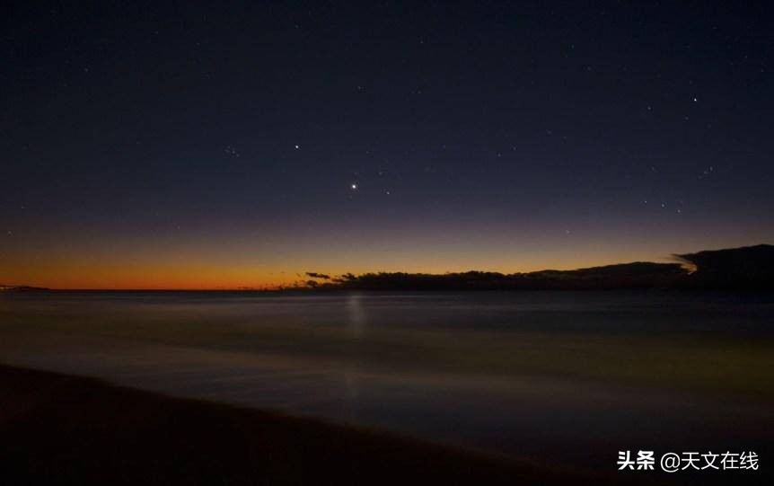 而1月27日这一晚就是这样一个最理想的夜晚,金星和海王星将会来个“约会”。由于这两颗行星将在彼此0度04分范围内经过,所以在这个夜晚,用双筒望远镜或望远镜就可以很容易地看到太阳系远处的蓝色行星——海王星。