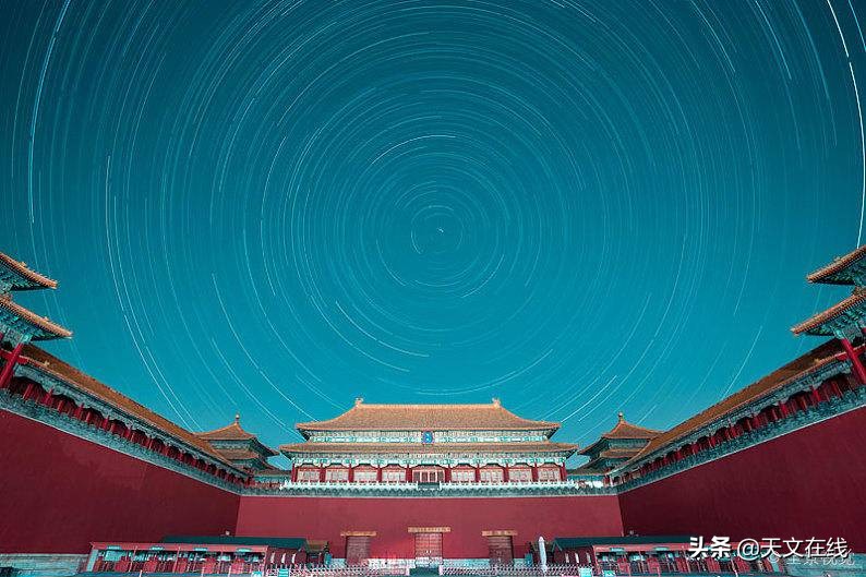 图解:星星在故宫上空运动的轨迹。图源:quanjing.