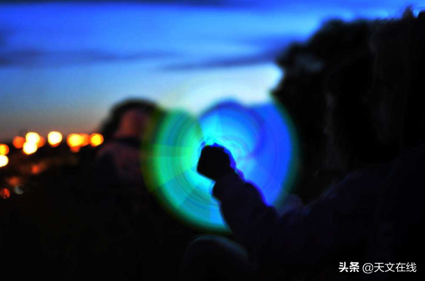 那为什么星星看起来不像旋转的发光棒一样?这是因为地球自转导致星星看起来像在天空中旋转,但是这种旋转速度很慢。星星们需要一天时间才能在天空中完成一个圆圈路径,而发光棒仅花费需要十分之一秒就能旋转一圈。因为星星速度很慢,所以我们的眼睛大部分时候都能跟上星星,但跟不上旋转的发光棒。星星当然也存在运动模糊的现象,只是比发光棒的运动模糊慢得多,因为星星运动得太慢了。用肉眼观看到的星星的运动模糊太慢,以至于我们肉眼相对较低的空间分辨率无法识别,而相机或望远镜就可以识别出来。