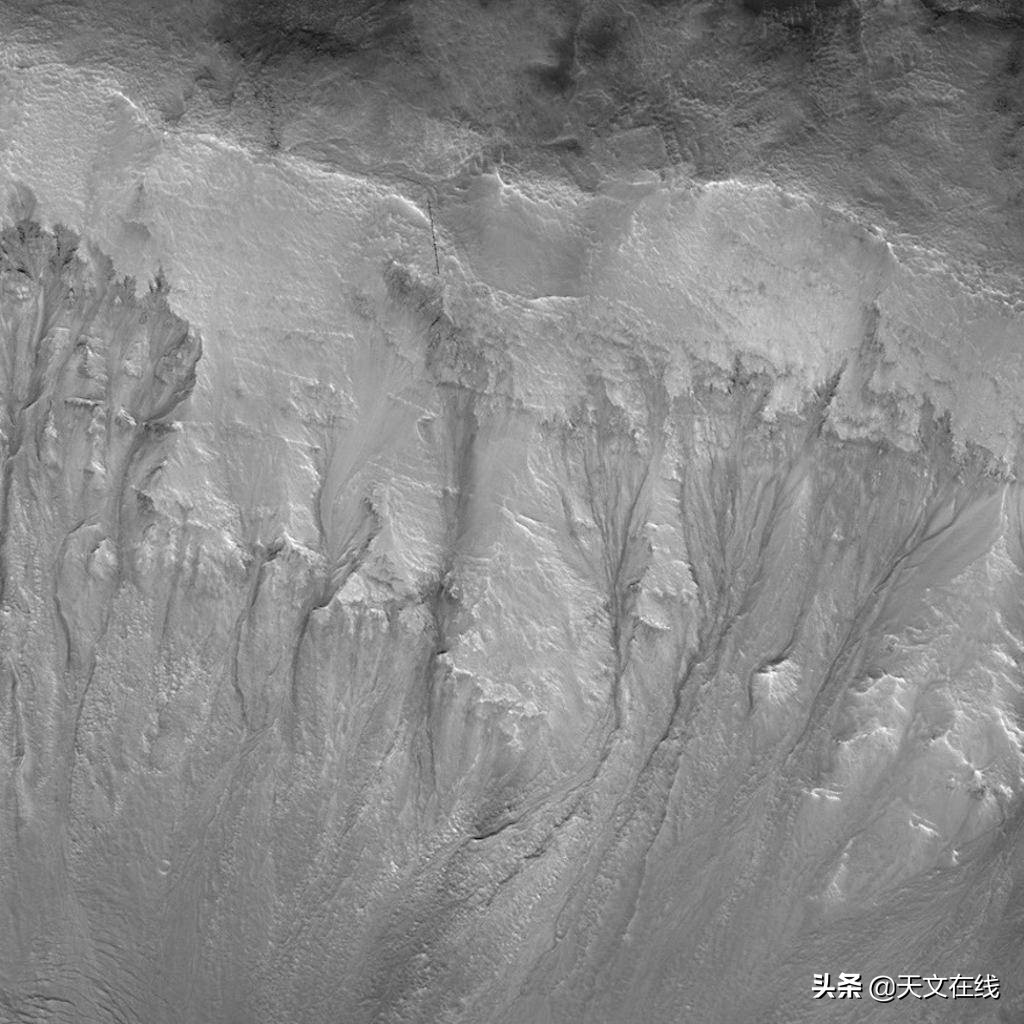 火星帕利基尔陨石坑壁上的坡纹表明,火星表面有季节性的液态水渗漏。