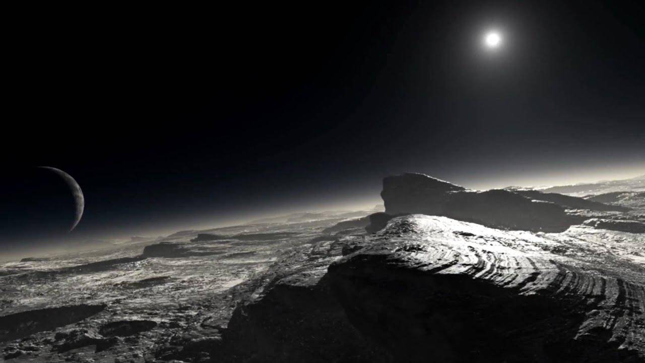 (图解:在冥王星上看到的太阳和冥卫一”卡戎”的合成假象图; 图源:Youtube)