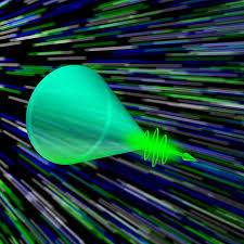 当带电粒子以高于光速的速度通过介质时,该介质就会产生微弱的辐射。例如,在水中,带电粒子激发水分子,然后水分子通过发射蓝色光子恢复到正常状态。在水中的移动速度比光速快,所以它可以触发一串光子,这些光分子彼此处于相位,可以建设性地相互干扰,形成可见的蓝色光。光在发生相互作用区域的以锥状传播。锥羊角θ的表达式可以很容易地推出粒子的速度v,通过检查,波前发出的跟踪粒子增强干涉: