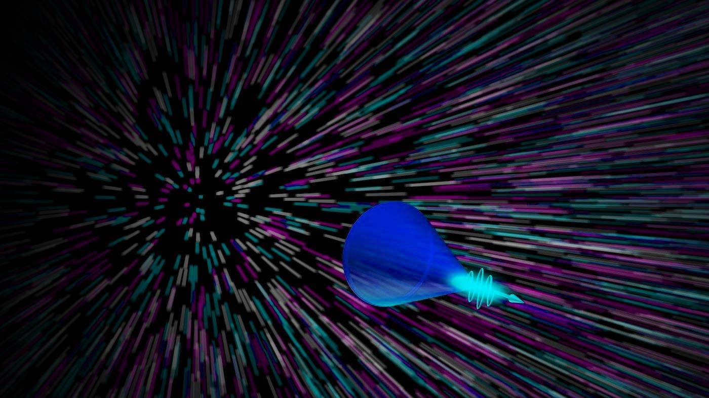 这种效应被称为切伦科夫辐射,是帕维尔·切伦科夫在1934年观察到的一种微弱的蓝光,被要求研究液体中的放射性效应。伊利亚·弗朗茨和伊戈尔·塔姆对光线的解释是。当切伦科夫辐射在一个表面上形成圆圈时,可以探测到它,它可以用来探测粒子的速度和方向。因此,它是研究粒子碰撞和宇宙射线产物的一种非常有用的方法。