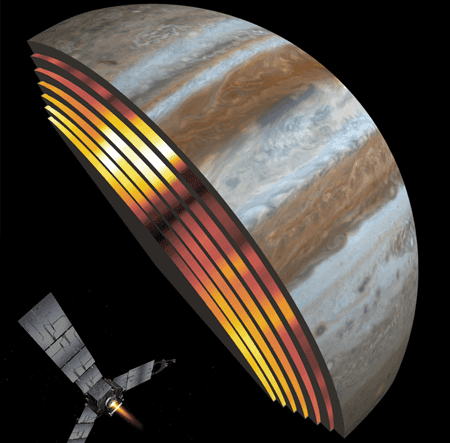 在今年出版的《地球物理研究快报》上,这些发现同样出现在了一篇题为《木星内部结构模型与朱诺重力测量及稀释核心的作用》的论文中。这项研究由加州大学伯克利分校的研究生肖恩·沃尔主持,成员包括威兹曼科学研究所、西南研究所、美国宇航局戈达德太空飞行中心和喷气推进实验室。