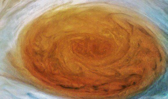 这种反气旋风暴在17世纪首次被发现,是木星最著名的特征。其直径约为16000公里(10000英里),风速可达每秒120米(432公里/小时;在它的边缘。朱诺号相机已经拍摄了一些非常令人印象深刻的风暴图片,其他数据表明风暴可能会持续很久。