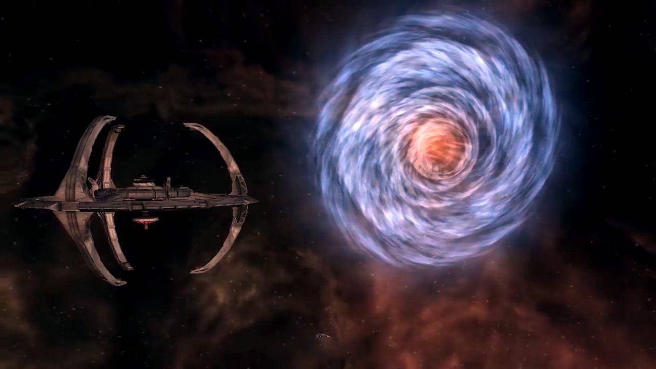 另外一个选择是虫洞。虫洞是连接两个空间点的通道,虽然我们并不知道如果虫洞真实存在的话我们该如何稳定它。我们通常设想建造一艘宇宙飞船,穿越虫洞,到达另一端,但同样你可以在一个星球的运行轨道前方打开虫洞,使一整个星球穿越虫洞,到达另一个环境极端的地方,比如说太阳跟前,如果地球遭遇这样的命运,所有生命都会灰飞烟灭。