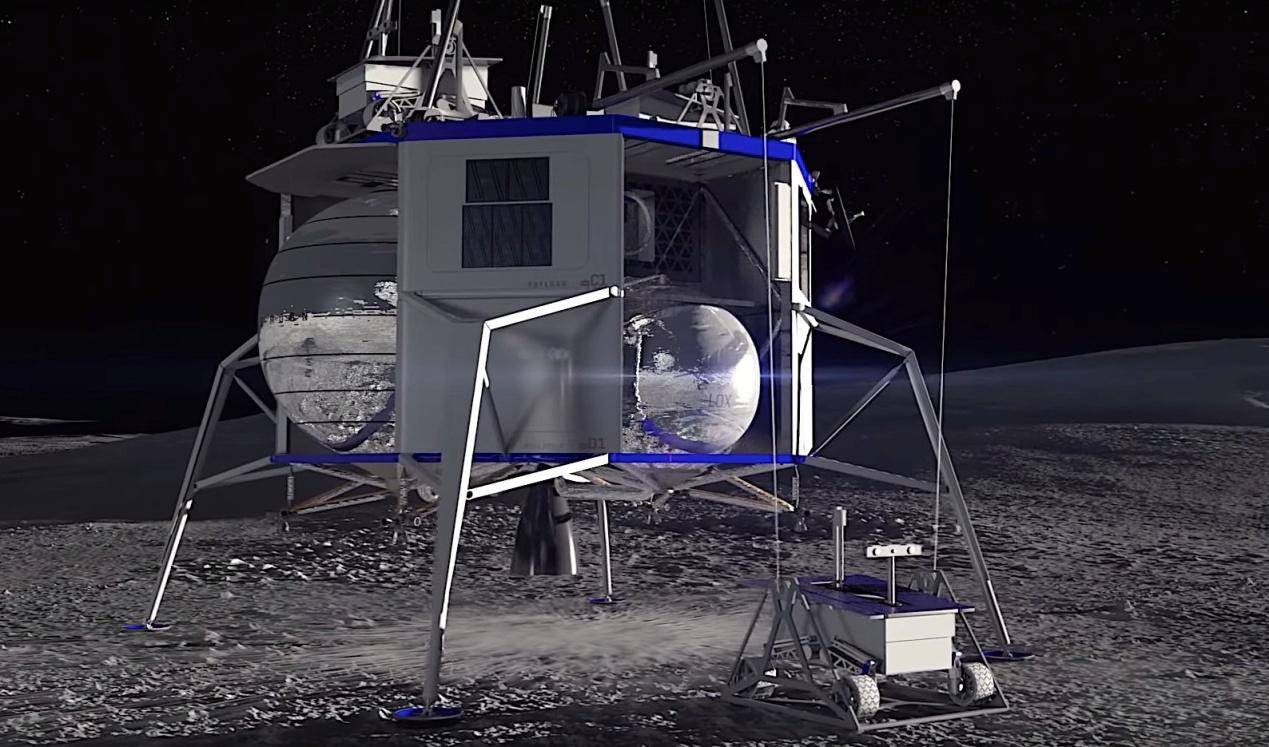 蓝月亮及其登月车假想图,图片来源:蓝色起源