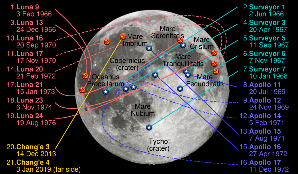 图解:至今所有月球软着陆的位置