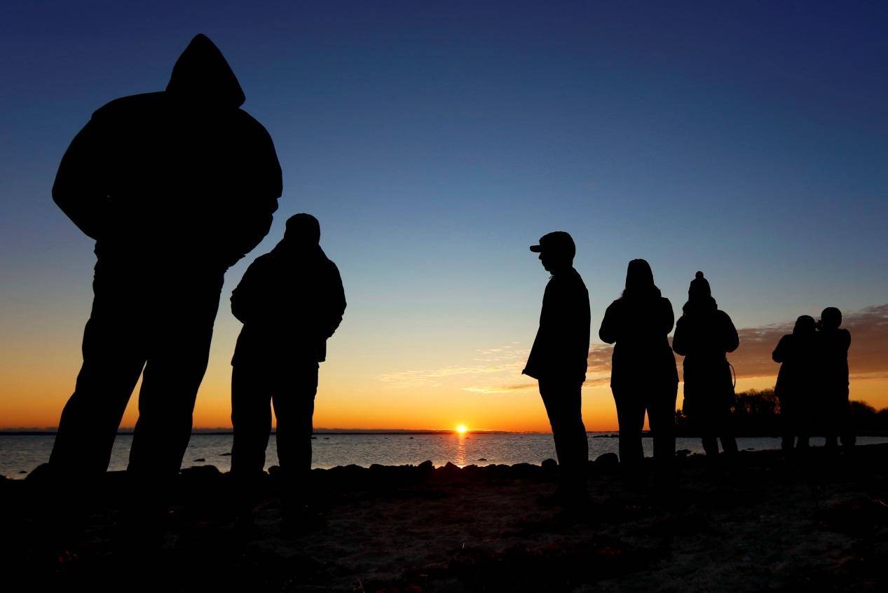 现在,让我们将这两种影响因素结合在一起来看看冬至前后会发生很么:倾斜度和椭圆率两者的结合使得冬至附近的当地正午晚于时钟正午。因此,这导致日出和日落的时间都会变晚(没有这种影响的话,日出会变晚而日落会变早)。总体的效果就是,即使白天变得越来越短,日落也会在冬至前开始变得更晚。