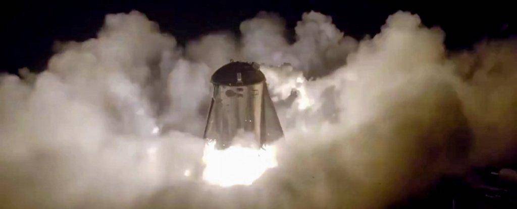 “就好像我们今天的测试流产了。”SpaceX的认证工程师KateTice在一次广播直播中说,“如你所见,飞行器没飞起来。”但他们又试了一次。在一阵爆炸引起的沙尘和火箭引擎的轰鸣声中,星虫飞到了大概65英尺(约20米)的高度,它在空中盘旋了一阵,略翻转了一个侧身位,最后降落在了指定的平台上-在它起飞的地方。