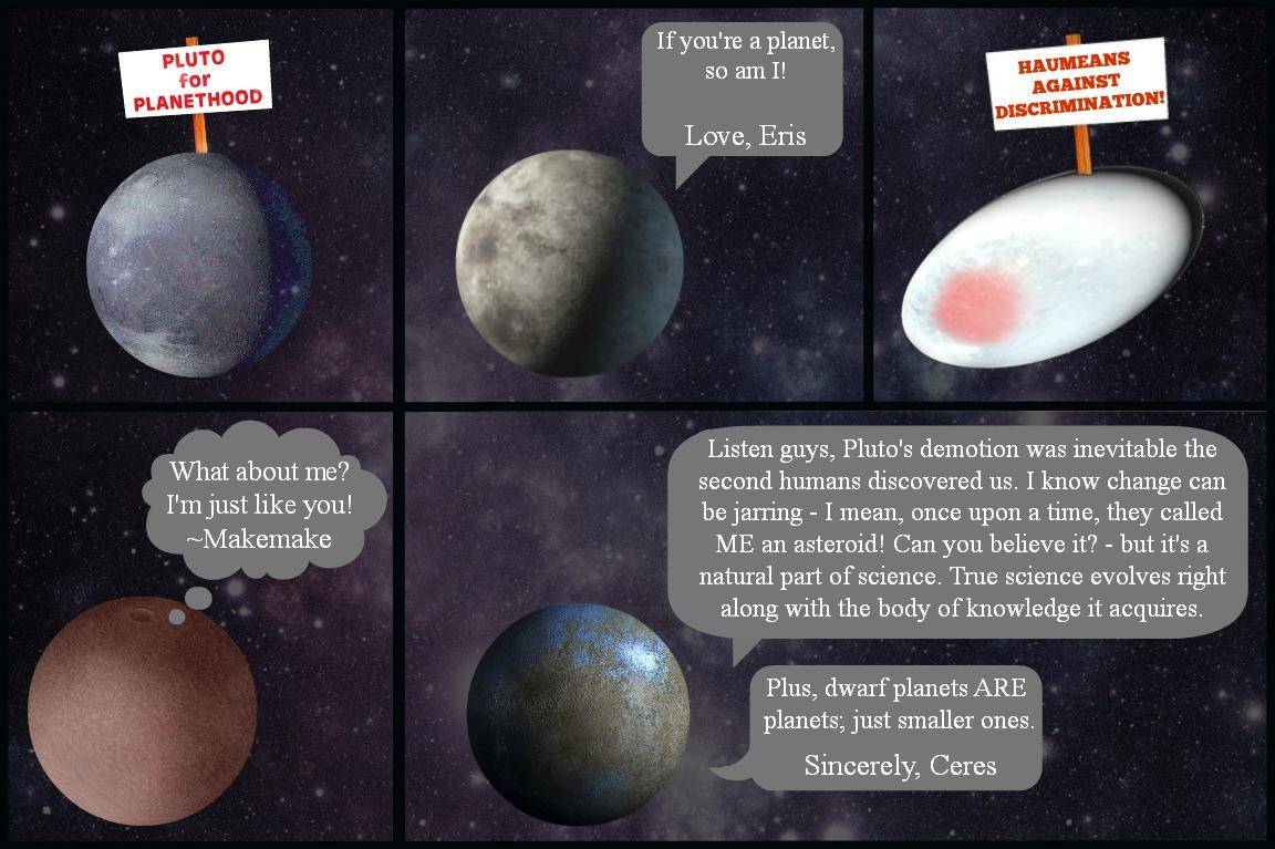 如今行星的定义对占星学家、怀旧者、大学和像美国国家航空航天局这样的机构来说尤为重要,后者的研究资金正基于此。因此关于冥王星是否是行星的这一争论并不完全客观。至少冥王星、太阳系中的其余天体和物理学定律应该从未听说过吉姆·布里登斯廷、美国国家航空航天局、艾伦·斯特恩或是其他人的名字。