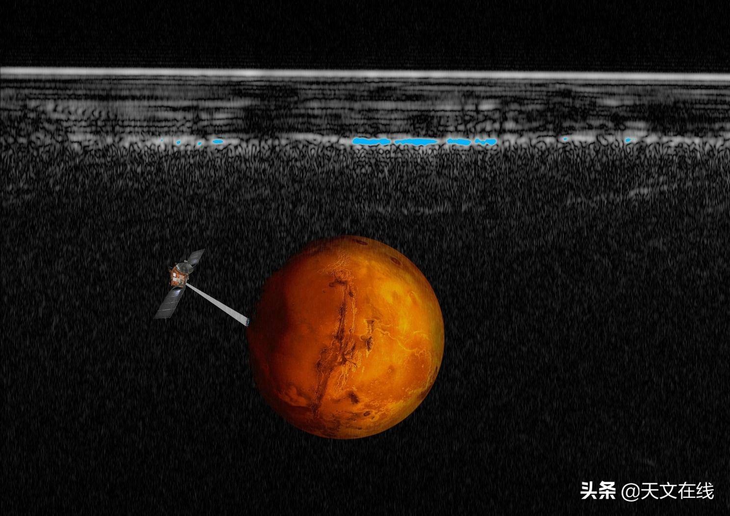 火星的卫星检测到的雷达反射显示火星冰层下存在一个20公里宽的湖泊。
