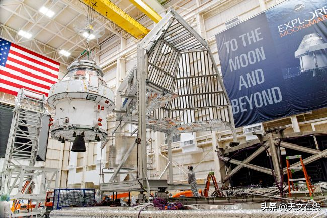 NASA的猎户座飞船在被搬到NASA位于俄亥俄州桑达斯基梅溪测试基地的真空测试室之前被放进了一个保温箱里。2021年,这艘飞船将运行NASA新的太空发射系统Megarockt,去执行一次无人操作的阿尔特弥斯1号测试飞行任务。在那次任务之后,NASA计划用猎户座飞船让宇航员在月球上飞行。