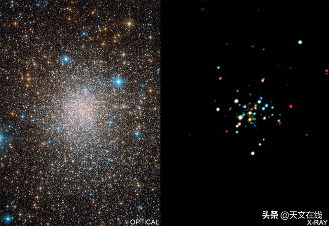 Terzan 5 CX1 双星系统是一个不稳定的星体,距离地球19000光年。这两颗恒星包括一具密度极高的“死亡”恒星和一颗类似太阳的恒星,这对星体每隔几年就会发生一次巨大的变化,这张Terzan 5 CX1的照片来自美国宇航局钱德拉X射线天文台。