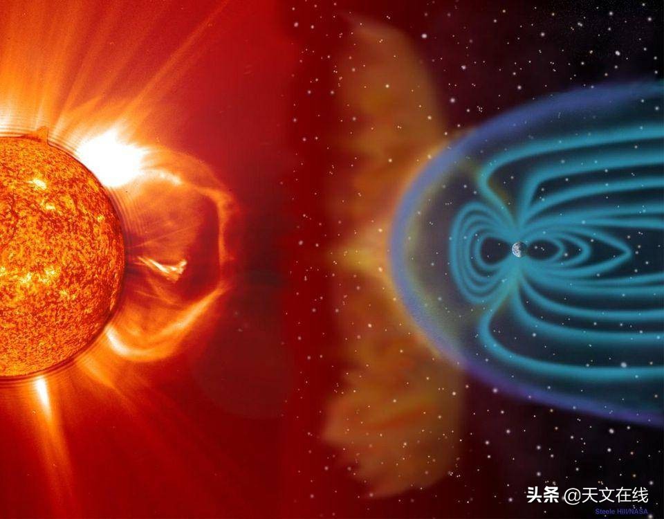 图片为保护我们免受太阳带电粒子影响的地球磁场
