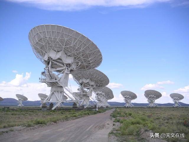 图解:图片显示的是美国国家无线电天文台座落在新墨西哥州索科洛的甚大天线阵(Very Large Array,VLA)。27只天线每只的重量是209公吨(230吨),需要时可以在阵列中的轨道上移动,以使用孔径合成干涉仪进行详细的研究。