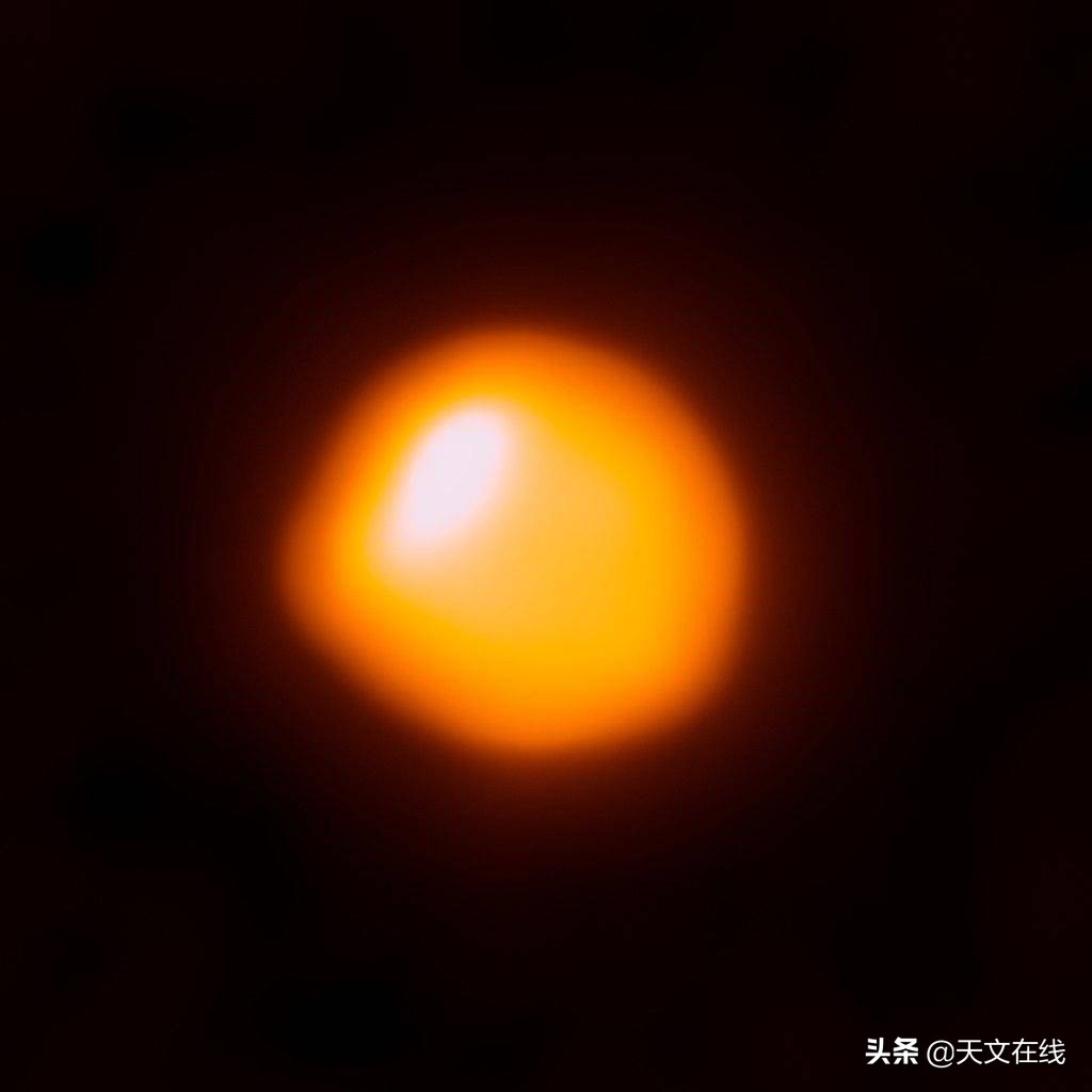 图解:透过ALMA于2017年6月拍摄到的参宿四,这是迄今分辨率最高的太阳系外恒星照片,也是ALMA首度清楚观测到恒星表面