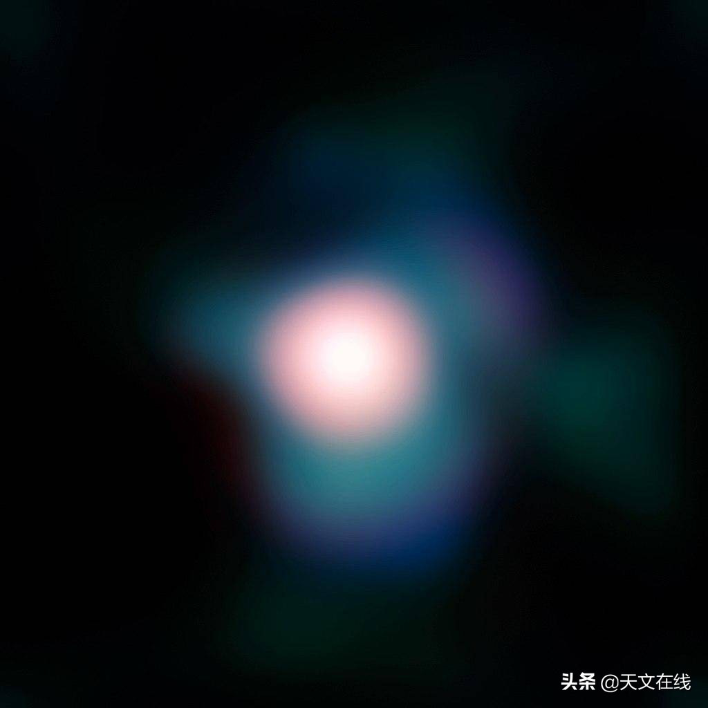 图解:来自ESO的甚大望远镜所显示的图像,不仅有恒星的盘面,还有以前不知道的被气体围绕着的烟羽伴随着扩展的大气层。