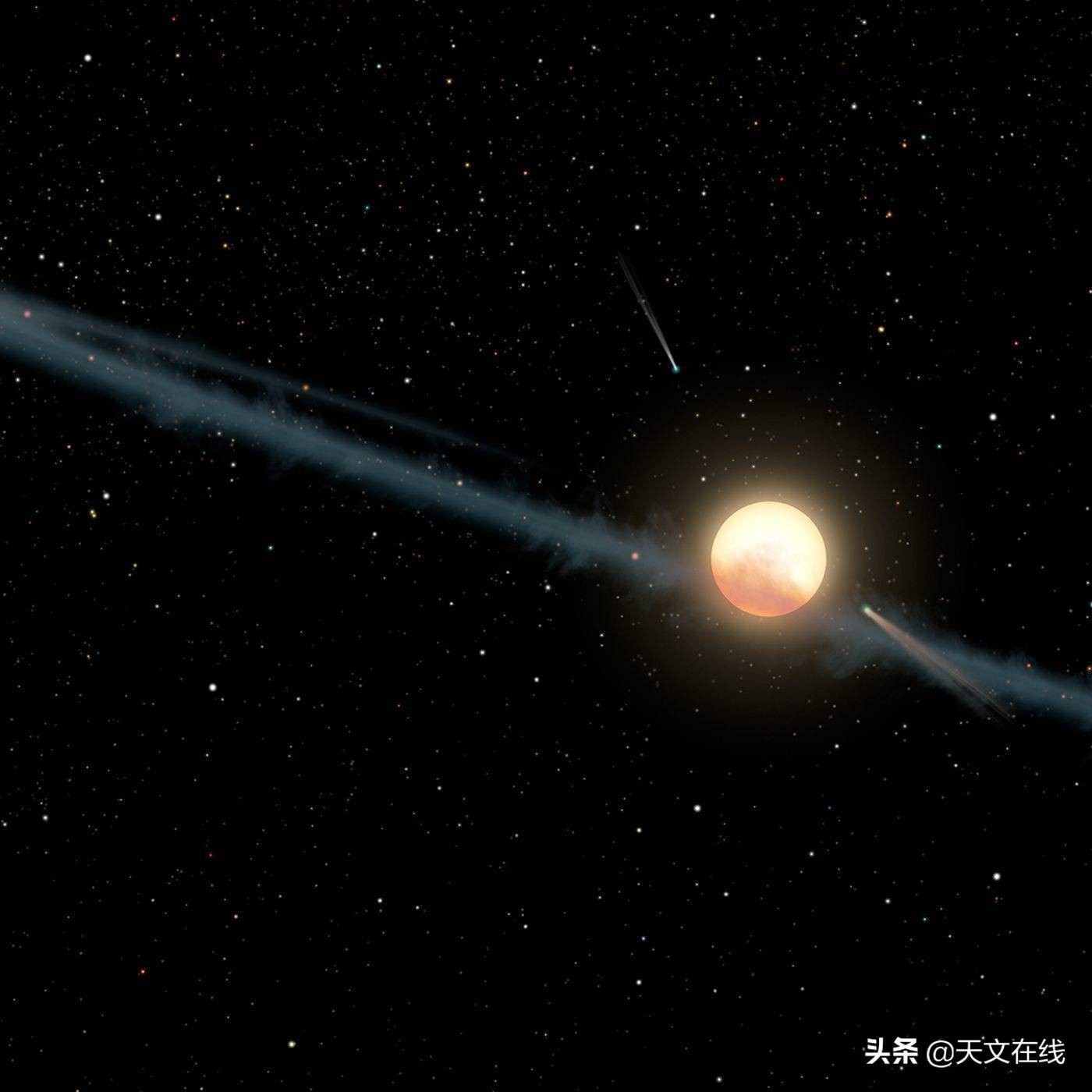 另外有人说,好吧,是不是这颗星已经形成了行星系统,而两颗行星相撞了,就像地球——月球的形成过程。好吧,这两种假说都可以解释部分数据,但是困难在于,这颗恒星没有显示任何年轻的特征,而且也没有来自任何物质被星光加热发出的光晕。如果恒星年轻,或者碰撞产生大量尘埃,通常会出现这种现象。又有人说,会不会是一大群彗星呢在一个非常椭圆的轨道上一连串地穿过这颗恒星?好吧,这个假说倒是和我们的观测相吻合。