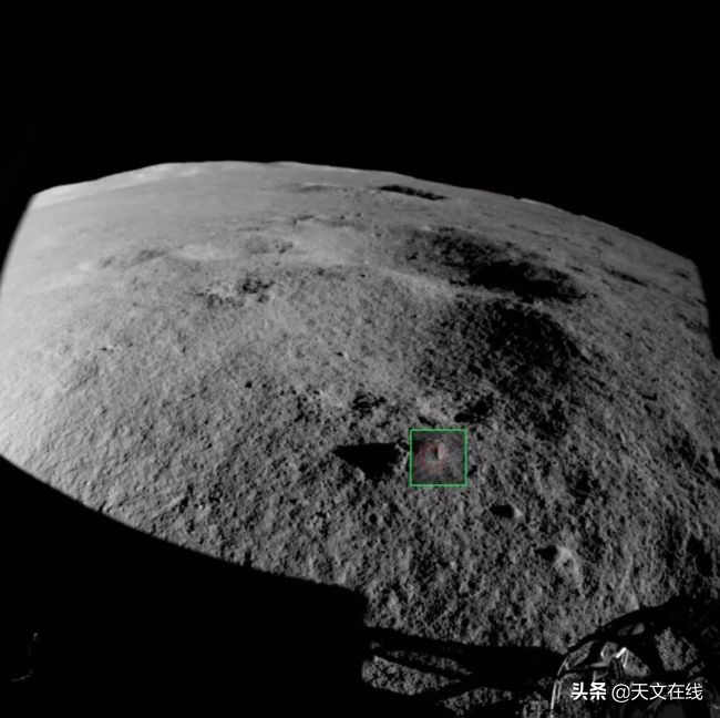 一块陨石碎片被玉兔2号的避障相机所发现。(图片致谢:中国国家航天局/中国探月/我们的太空)美国宇航局在马里兰州戈达德太空飞行中心的博士后丹·莫里亚蒂表明,这些陨石的尺寸、形状及颜色为它们的来源提供了线索。“因为(这些陨石)形状和尺寸看起来都非常相似,(我们)可以合理猜测它们可能都是有联系的。”他告诉Space(太空网),“嫦娥4号着陆在火山岩带的火山海中,而且这些火山物质比月球上的常规高山地壳的颜色要深得多。如果这些陨石确实比(月球表面)土质更深,那这意味着它们是由高成分的比周围富含火山物质的土壤(颜色)更深的高山地壳土质构成的。”