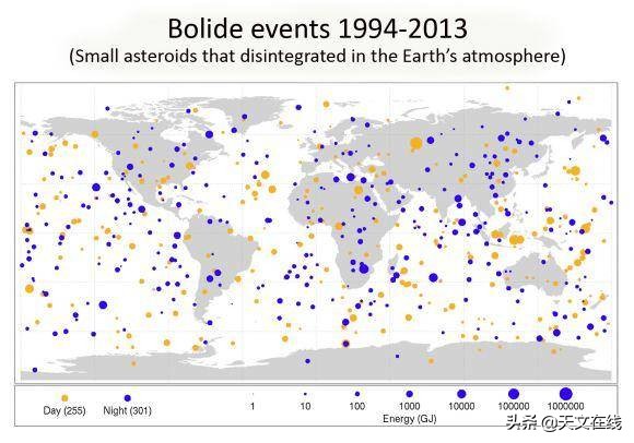 将这个撞击率与地球进行比较,地球每半个世纪左右就会被一个车里雅宾斯克大小的20米撞击器撞击一次。顺便说一句,我们比以往任何时候都更清楚这一撞击率对地球的影响,这主要是因为美国国防部在太空中的机密资产一直在监视核试验和导弹发射,而这些资产偶尔也会捡到流星“光弹”