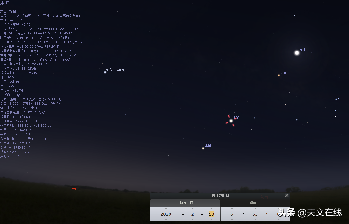 寻找木星:早上6点左右向东看。