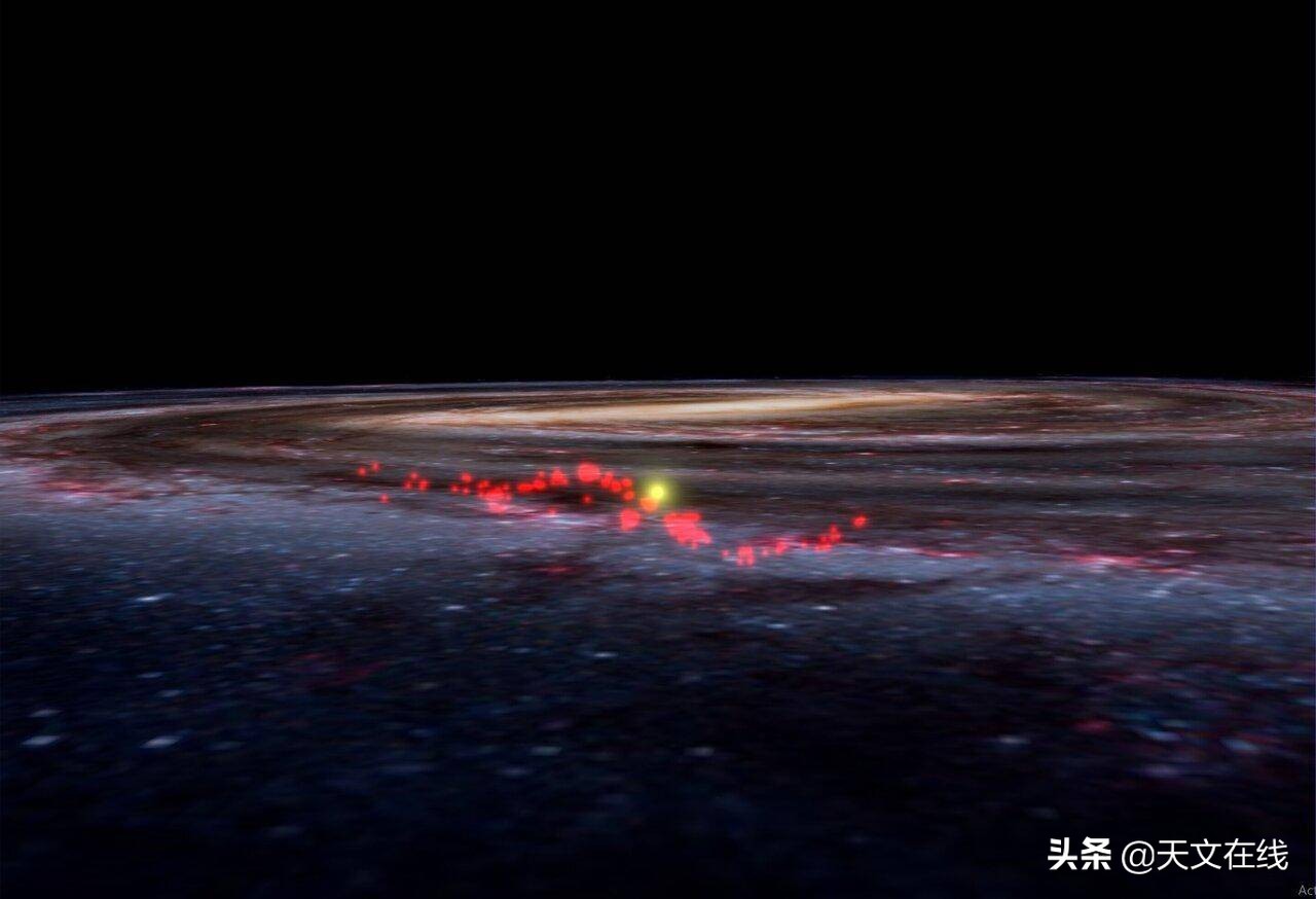 天文学家发现,我们在天空中看见的由许多恒星形成的区域,实际上仿佛形成了一个8800光年长的起伏的波,其中包含着相当于300万太阳质量的气体,这些气体可以构成我们银河系旋臂的一部分。