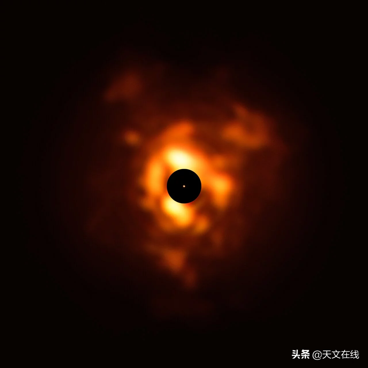 研究者使用超大望远镜上的VISIR仪器获得了一张新图片,它展示了参宿四周围的尘埃在2019年12月发出的红外光。这是由法国巴黎天文台的研究者Pierre Kervella及他的团队发现的研究结果,该团队解释说,图片中的波长类似于热感应相机检测到的波长。当恒星将自身物质抛射回太空时,会形成类似于VISIR图像中火焰形态的尘埃云。