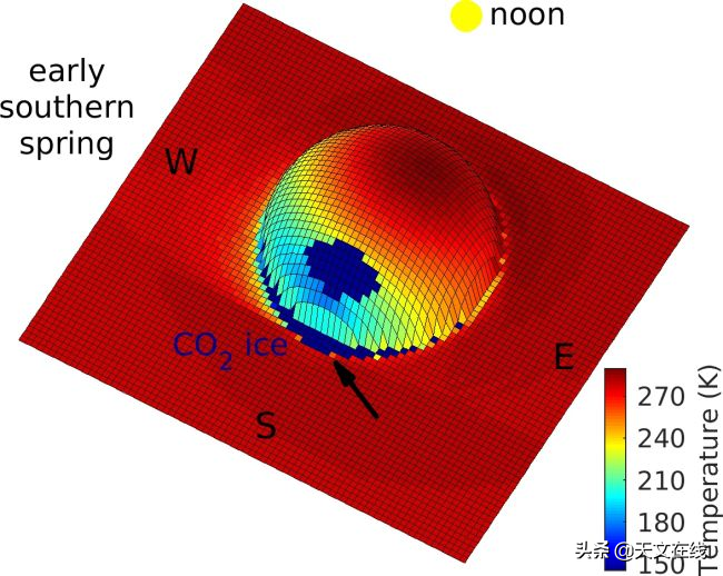 根据研究作者、亚利桑那州图森市行星科学研究所的资深科学家罗伯特·雪儿科夫进行的计算机模拟,三维图像显示,火星的sce会季节性地在阴暗的地方聚集。