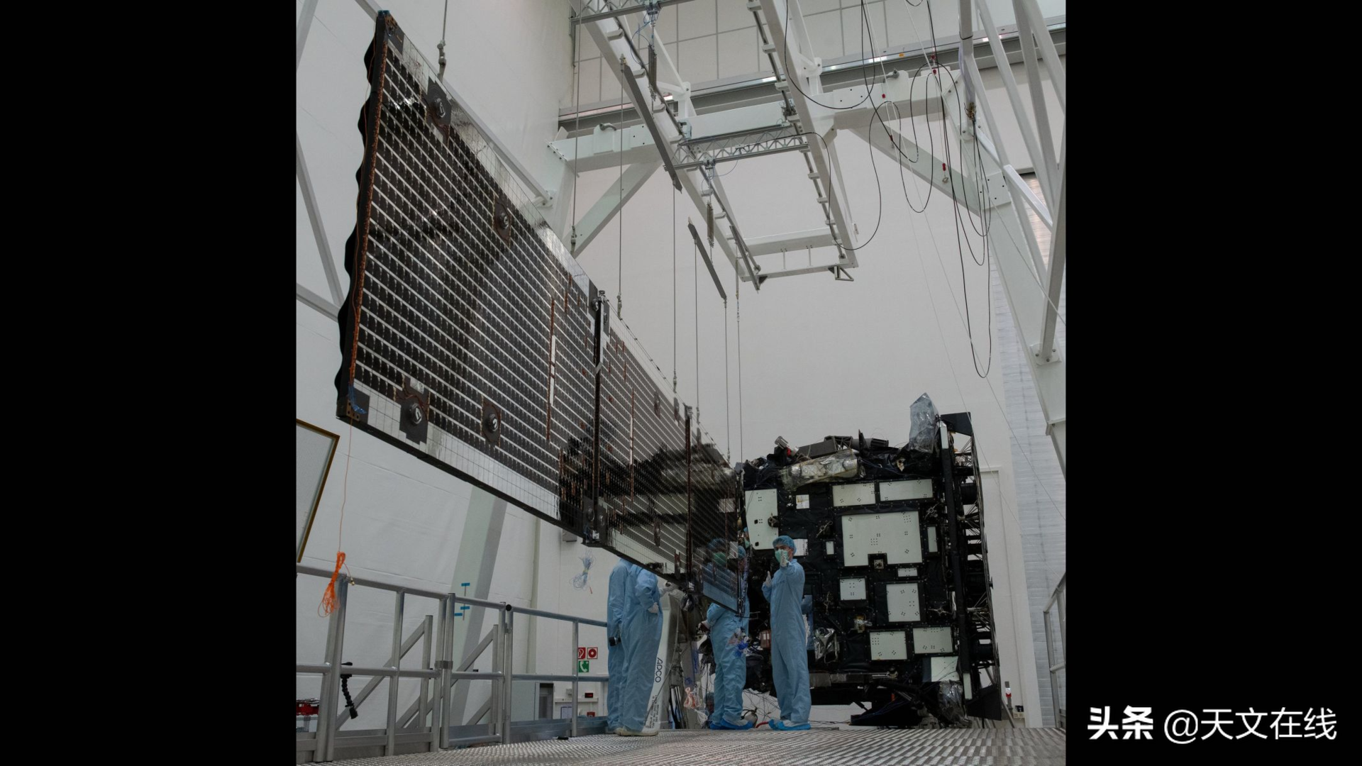2019年3月21日,欧空局的太阳轨道飞行器在德国奥托布伦的IABG测试中心进行了太阳能板阵列的展开测试。(图片来源:S. Corvaja/ESA)