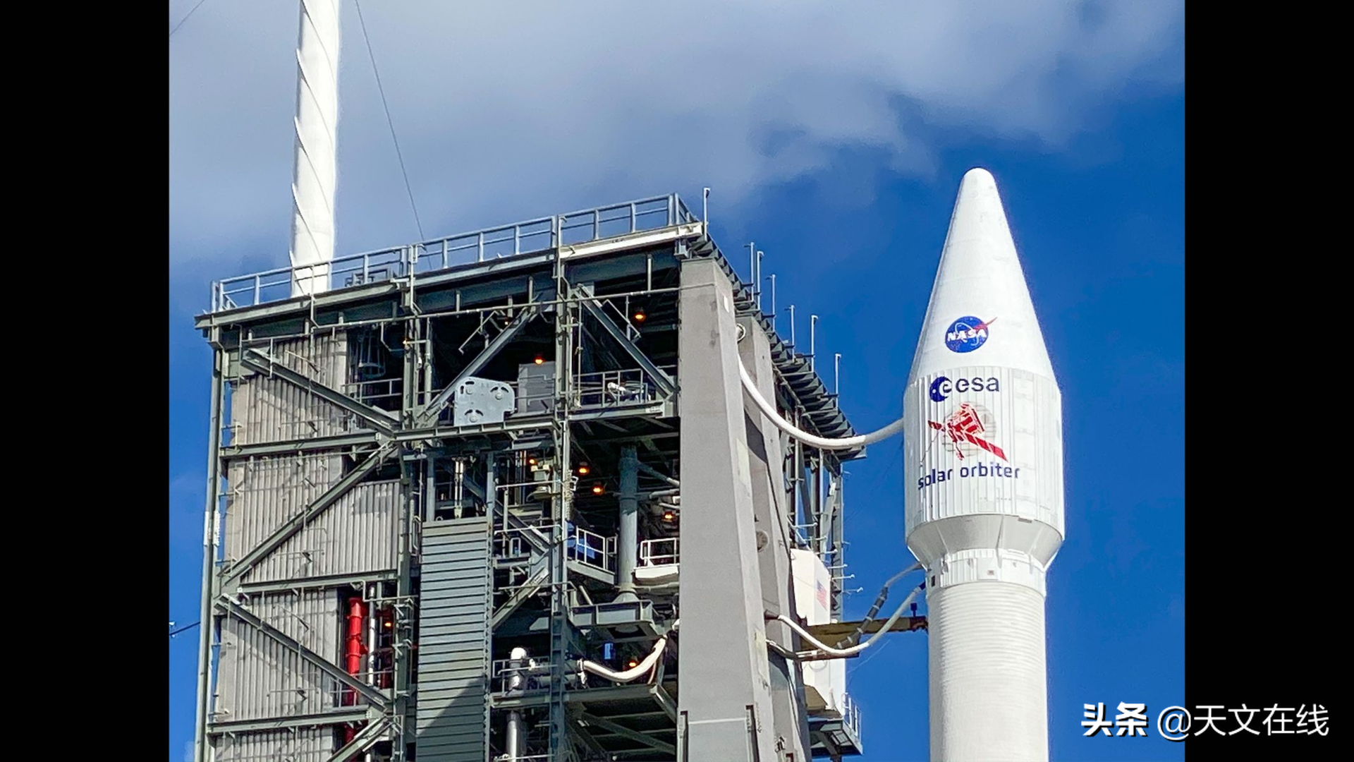 欧洲航天局的太阳轨道飞行器在美国佛罗里达州卡纳维拉角空军基地的41号发射台上准备发射升空。(图片来源:Amy Thompson)