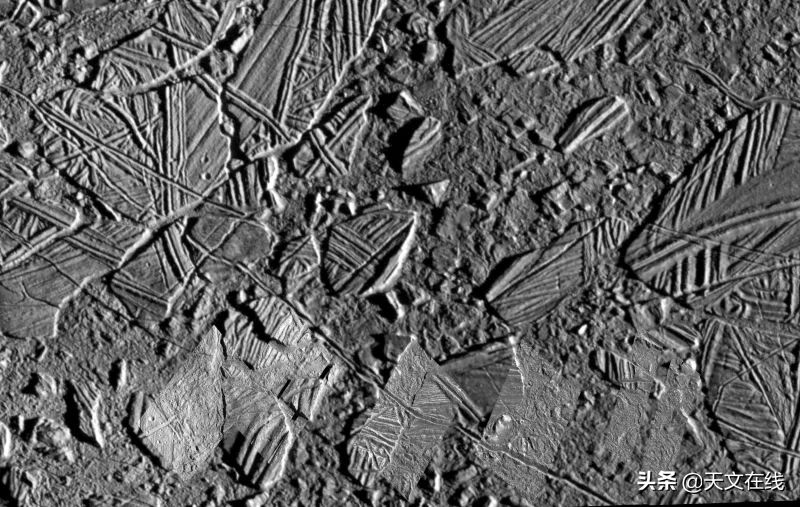 木卫二表面新生成的“混乱地区”,由伽利略号拍摄