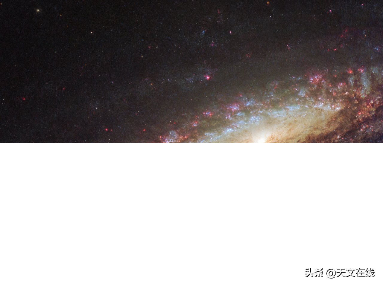 说明: 庞大美丽的螺旋星系NGC 7331,常号称是我们银河系的翻版。位在北天的飞马座内、离我们约5千万光年远的NGC 7331,很早就被归类为螺旋星云,而且是18世纪著名梅西叶星表未收录的较明亮星系之一。因为在我们视线方向,这个星系斜对着我们,因此在望远镜长曝光影像里,通常具有很强的层次感。在这幅哈伯太空望远镜拍摄的特写影像里,这个星系壮丽的螺旋臂上,有不透光的黝黑尘埃带、大质量恒星聚成的泛蓝明亮星团、和会发出特征泛红辉光的活跃恒星形成区。螺旋星系NGC 7331明亮泛黄的核心区,除了有大群较低温且较年老的恒星之外,也像银河系一样,内部藏着一颗超大质量黑洞。