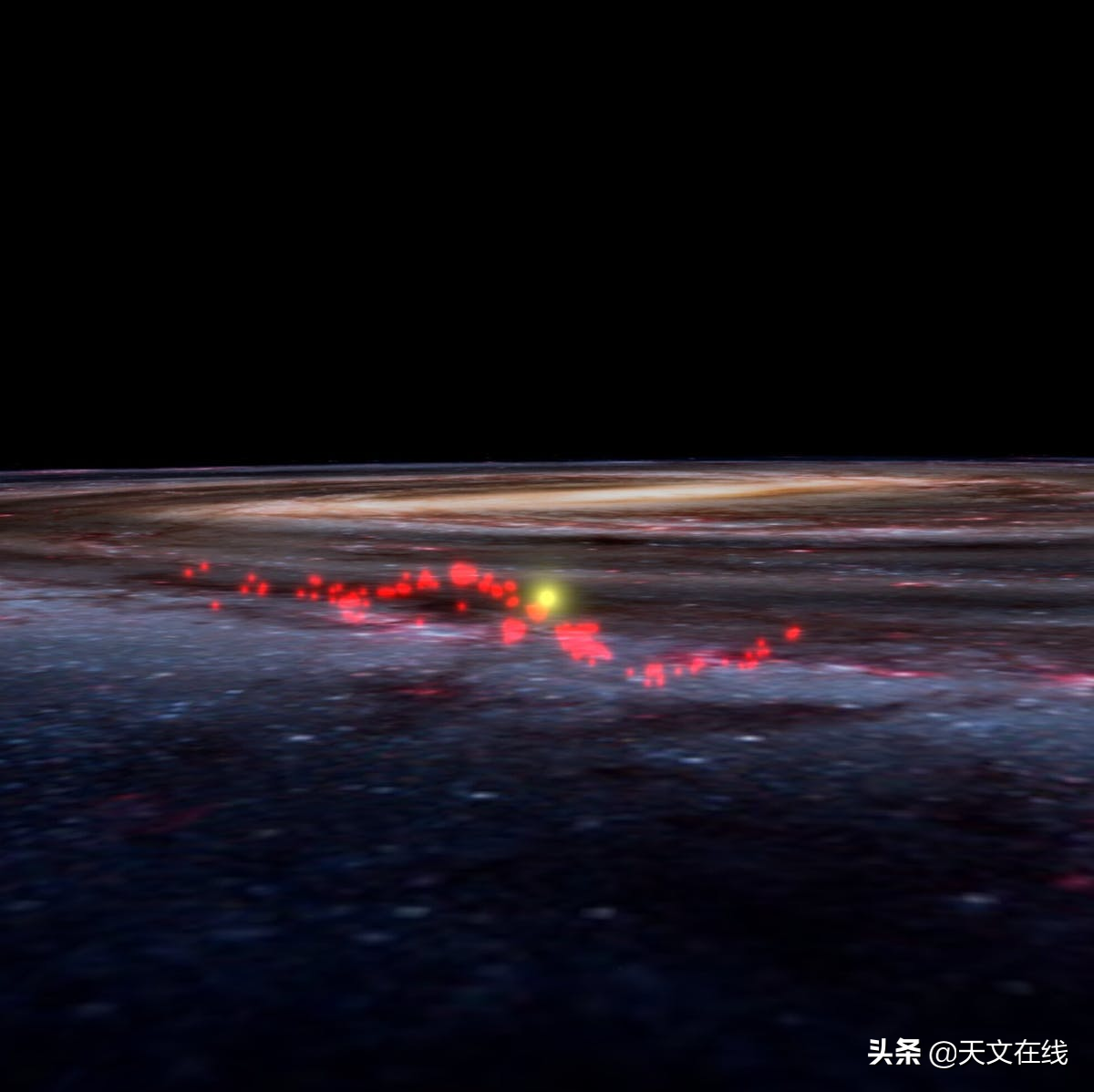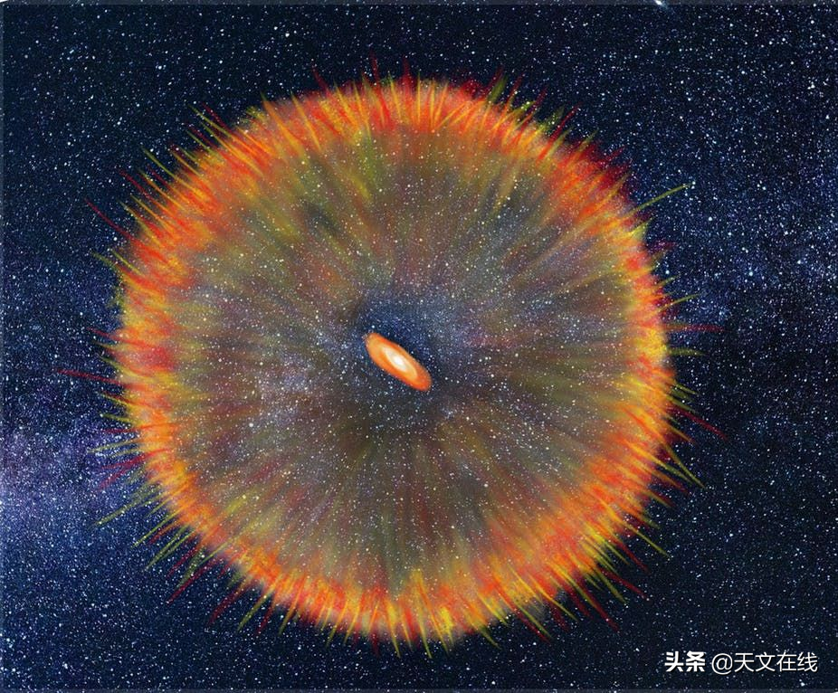 这张艺术图片显示了一个巨大的恒星,在它的形成过程中,我们探测到了其爆炸的热浪。
