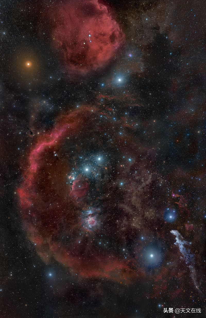 图为参宿四(左上)和猎户座分子云复合体的致密星云(Rogelio Bernal Andeo)