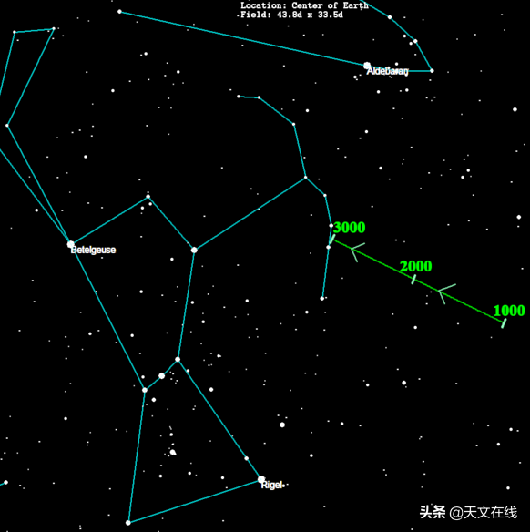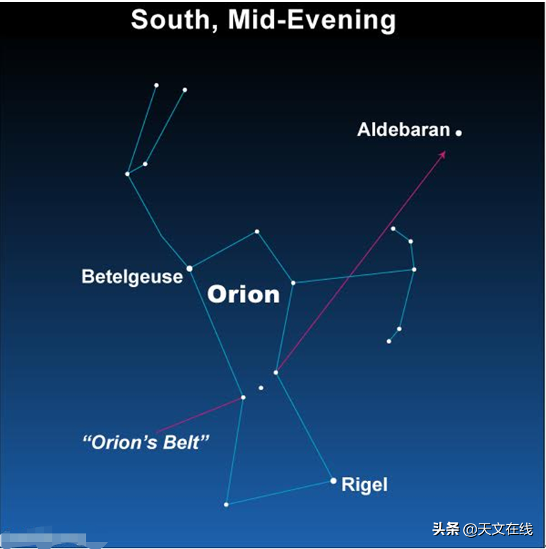 借助猎户座腰带三星找到毕宿五