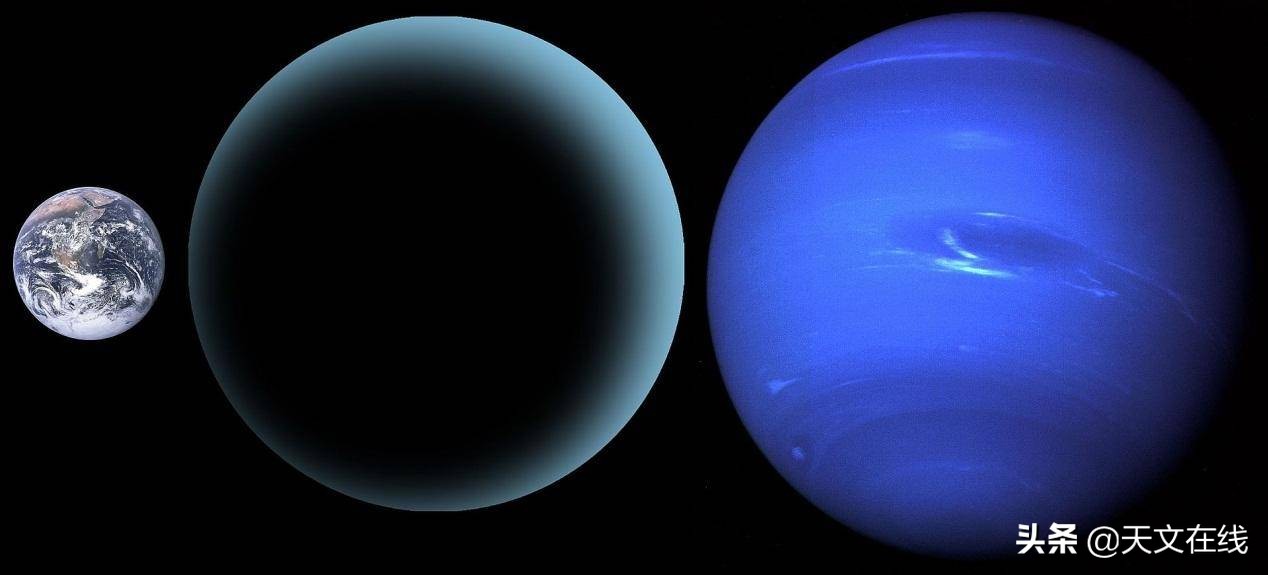 图解:第九行星被假定为地球直径的二至四倍;类似天王星和海王星等冰巨行星。